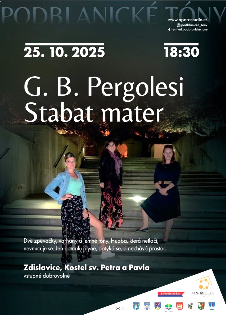 Dne 25. října 2025 se v kostele sv. Petra a Pavla v Zdislavicích uskuteční koncert G. B. Pergolesiho Stabat Mater. Od 18:30 se můžete těšit na vystoupení dvou zpěvaček za doprovodu varhan. Tato hudba vás pohltí svou jemností a emotivností, přičemž nechává prostor pro osobní prožitek. Vstupné na akci je dobrovolné, což umožňuje každému z vás se zúčastnit bez finančního zatížení.